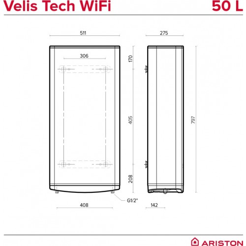 Επίτοιχος ηλεκτρικός θερμοσίφωνας Ariston Velis Tech Wifi 50 V (ΔΥΝΑΤΟΤΗΤΑ ΓΙΑ 12 ΑΤΟΚΕΣ ΔΟΣΕΙΣ)