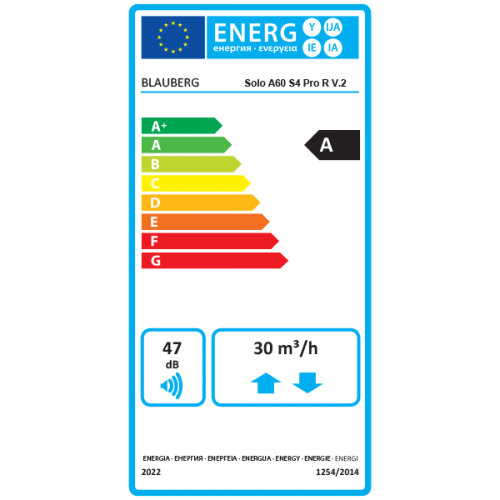 Σύστημα Μηχανικού Αερισμού με Ανάκτηση Θερμότητας BLAUBERG SOLO A60 S4 PRO R V.2 - Φ156