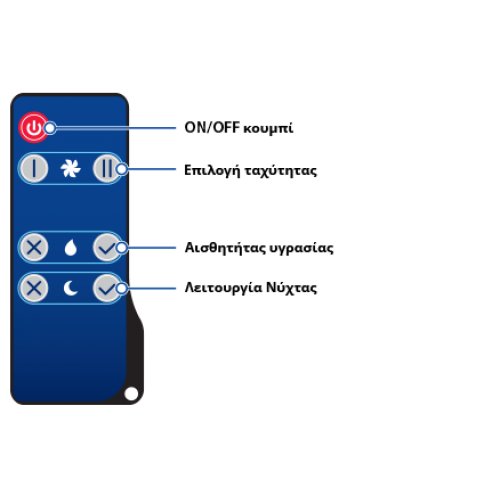 - Διαθέτει τηλεχειριστήριο με το οποίο ρυθμίζονται οι δυο ταχύτητες αναρρόφησης. Προσοχή δεν ελέγχεται χειροκίνητα.